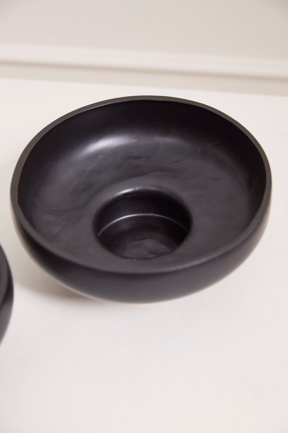Modern arrangements will shine in the Nightly Compote, a sleek, matte black ceramic compote with an open foot that accommodates stems and floral mechanics. Perfect for an ikebana inspired arrangement, a flower frog can be placed in the base to support artful floristry. The clean lines and minimal rounded foot of this vessel won't detract from what's on display above. The large size has a low profile and measures just under 4" tall, with a 7" opening.
