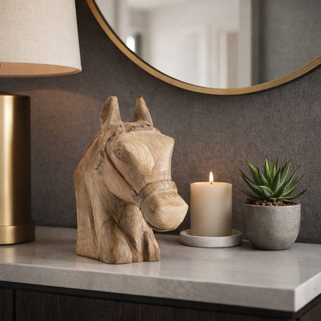 Wooden Horse Head Figurine