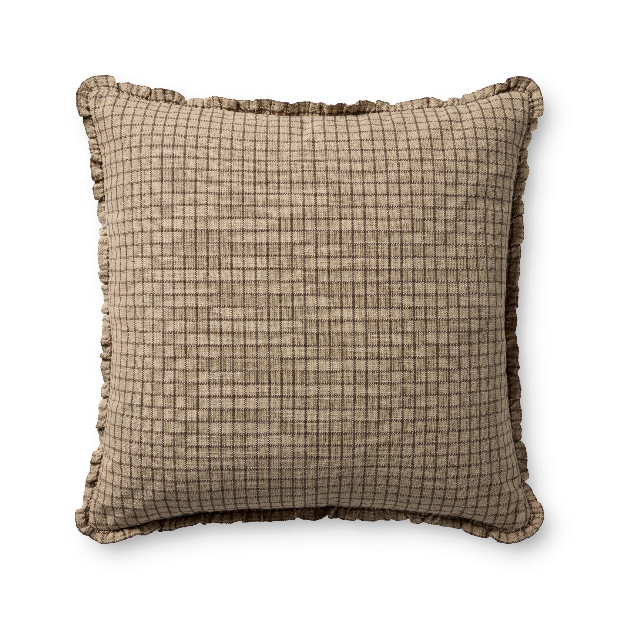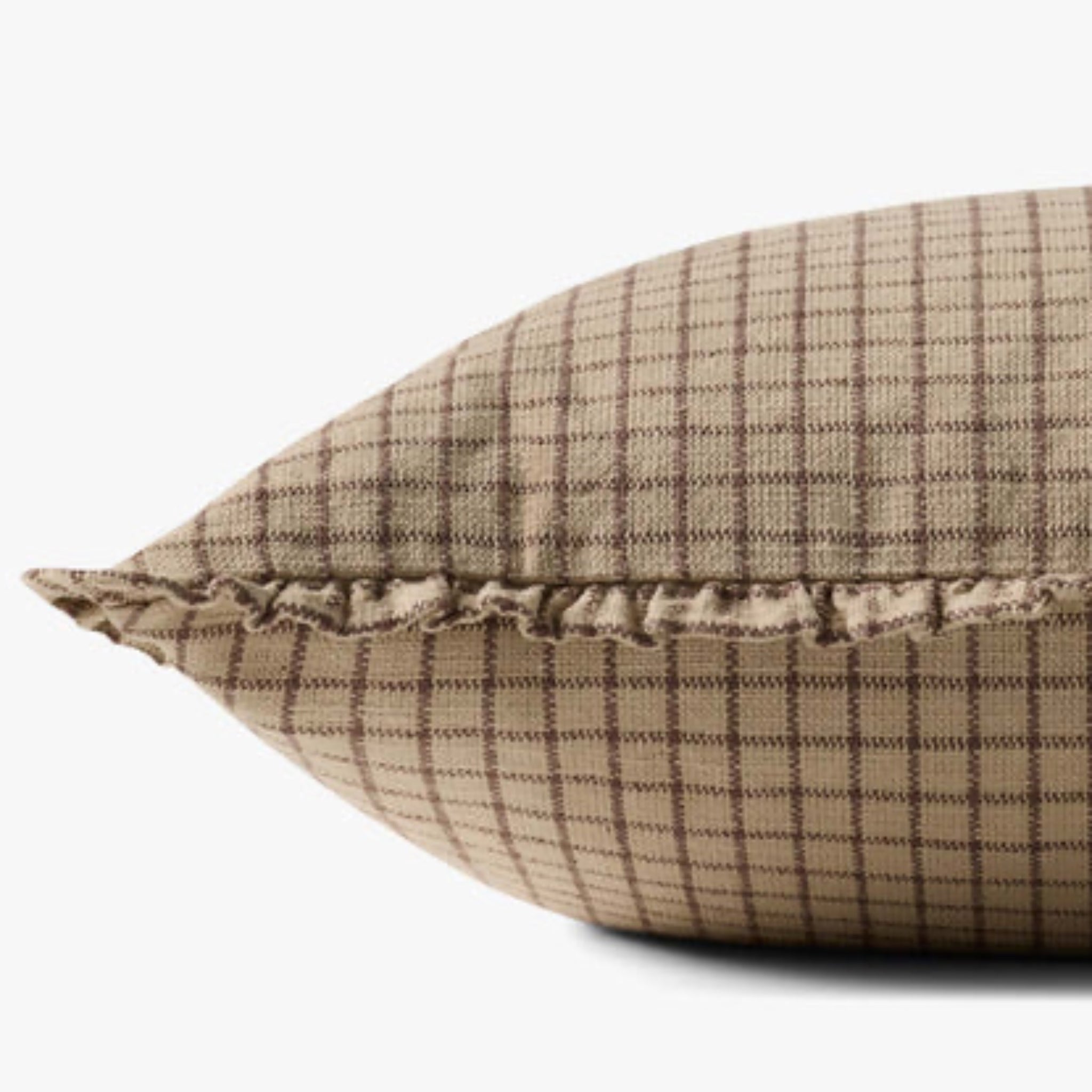 The Dinah Pillow features an ever classic plaid perfect for those who are experimenting with pattern mixing in their home. The soft mushroom and rich chocolate striping allow it to blend seamlessly into any color palette. Complete with a dainty ruffled edge, The Dinah Pillow makes a great addition to any seat in the house!
