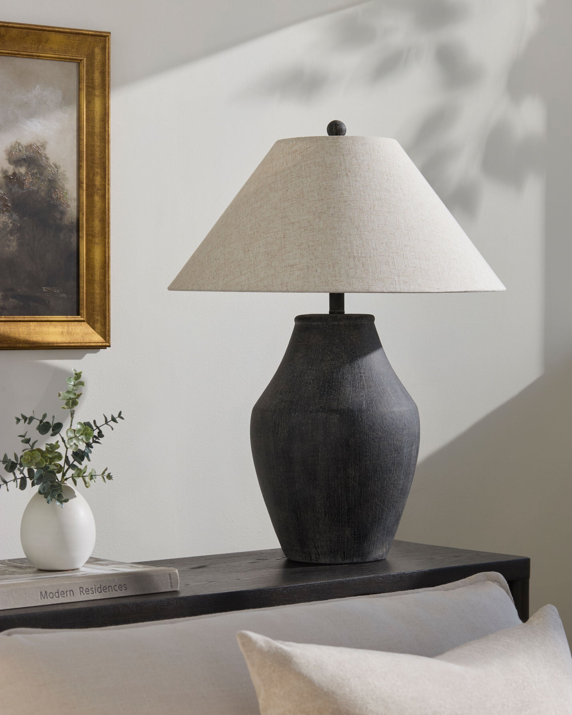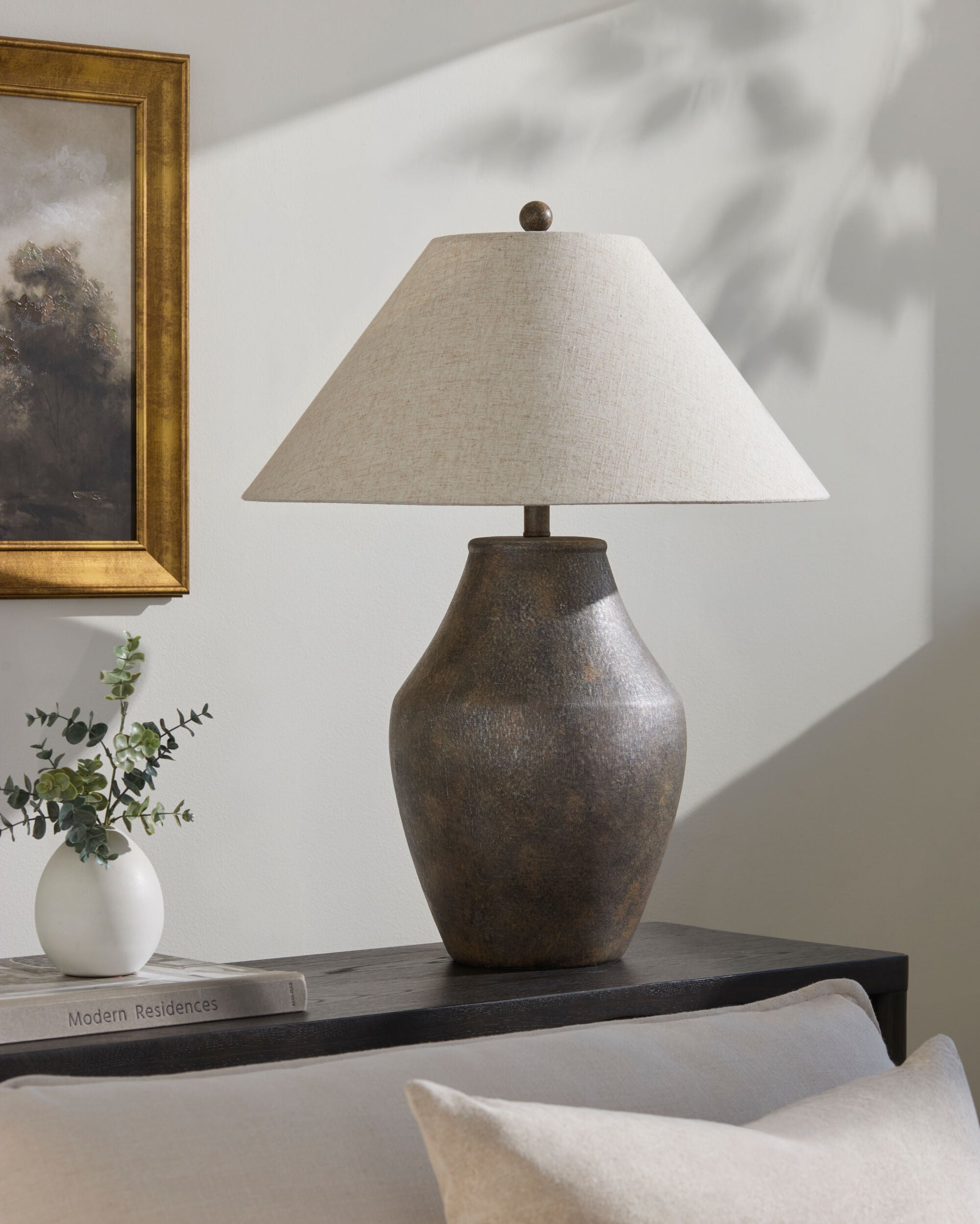The Amira Table Lamp is a classic organically shaped lamp with a textured finish. It comes in a variety of colors. This hearty lamp is the perfect piece to light your home.